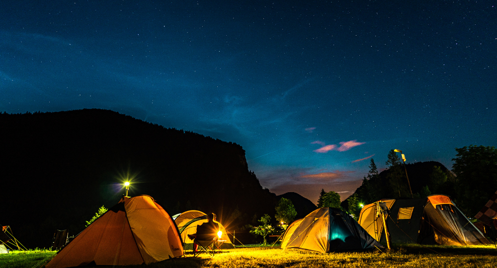 Overnight stays in tents under the stars in mountains, beaches, deserts, and forests.